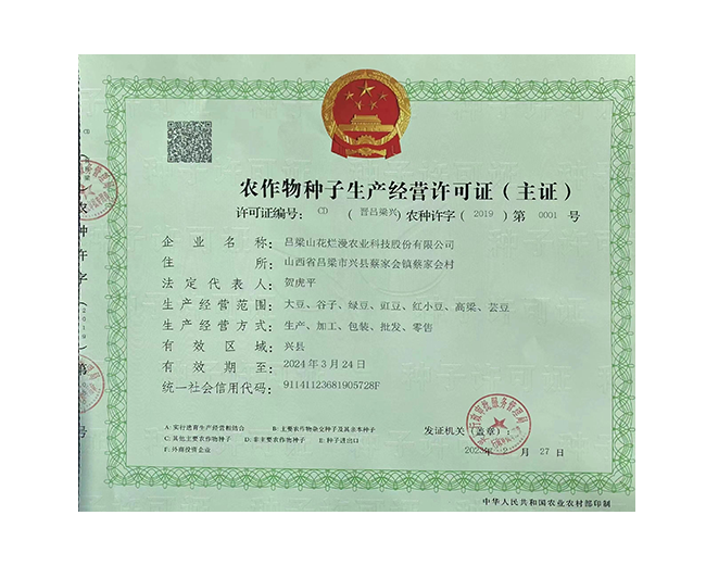 • 農作物種子生產經營許可證(副證)